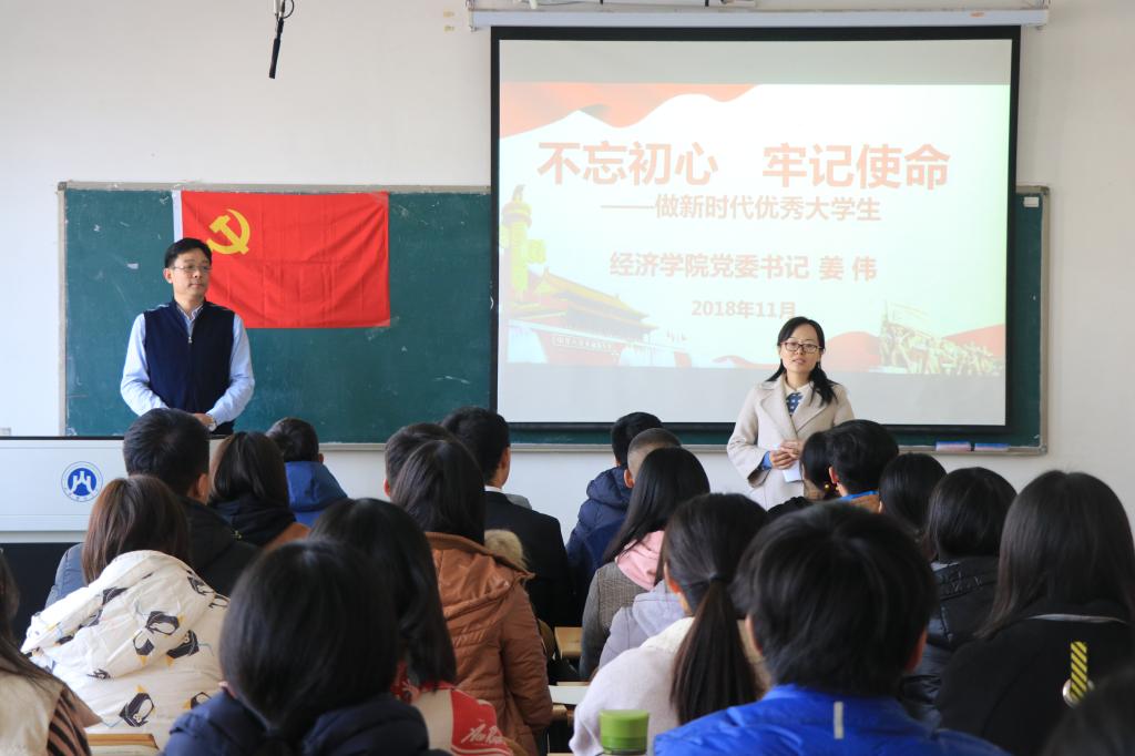 姜伟以“不忘初心,牢记使命——做新时代优秀大学生”为题,系统阐述不忘初心的科学内涵,并强调现阶段中国共产党人要用习近平新时代中国特色社会主义思想武装全党,要牢记使命,奋力夺取新时代中国特色社会主义伟大胜利,要牢记为中华民族谋复兴的伟大使命和远大目标,坚定实现中华民族伟大复兴的信念,要不忘初心,继续前行。